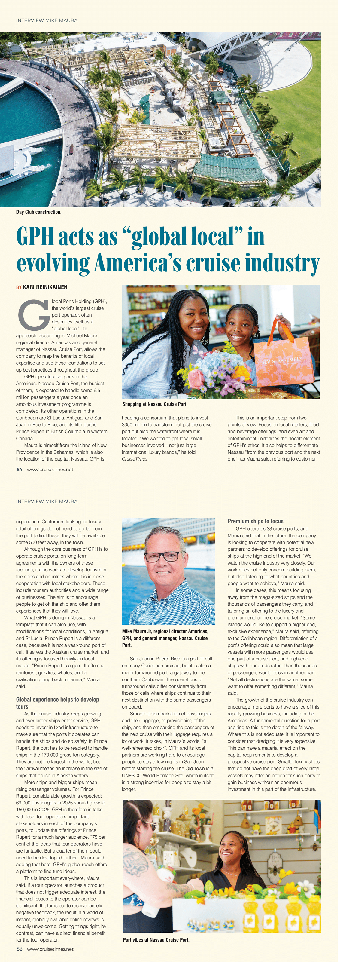 Global Ports Holding (GPH), the world’s largest cruise port operator, often describes itself as a "global local." Its approach, according to Michael Maura, regional director Americas and general manager of Nassau Cruise Port, allows the company to reap the benefits of local expertise and use these foundations to set up best practices throughout the group.