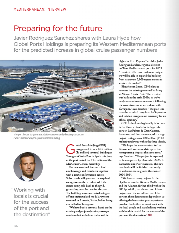 Javier Rodriguez Sanchez shares with Laura Hyde how Global Ports Holdings is preparing its Western Mediterranean ports for the predicted increase in global cruise passenger numbers.