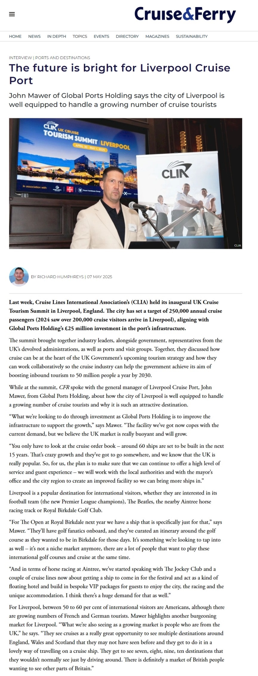 While at the summit, CFR spoke with the general manager of Liverpool Cruise Port, John Mawer, from Global Ports Holding, about how the city of Liverpool is well equipped to handle a growing number of cruise tourists and why it is such an attractive destination.